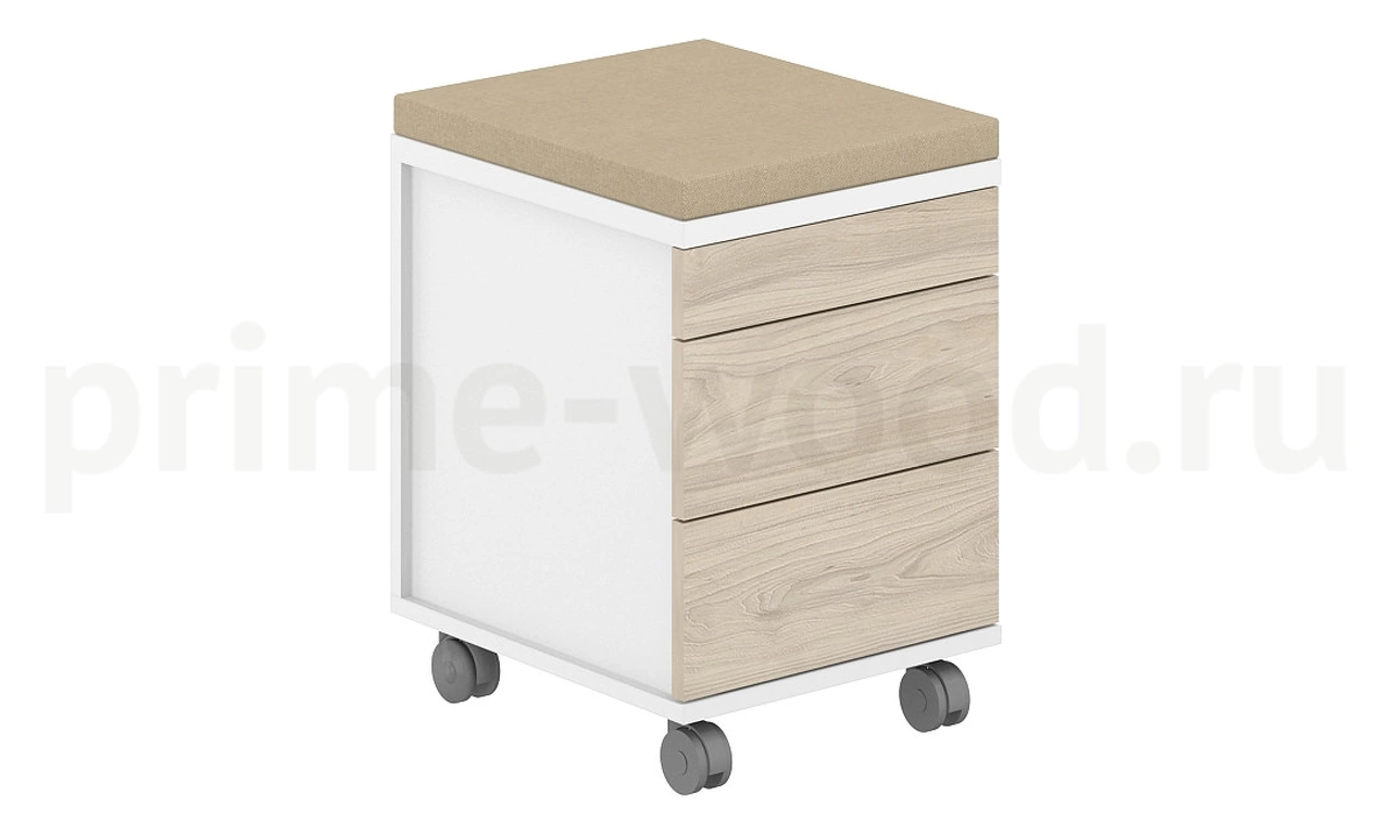 Тумба мобильная 2 ящика ЛДСП + лот.ящика + подушка AG.273.WH.WH.AR